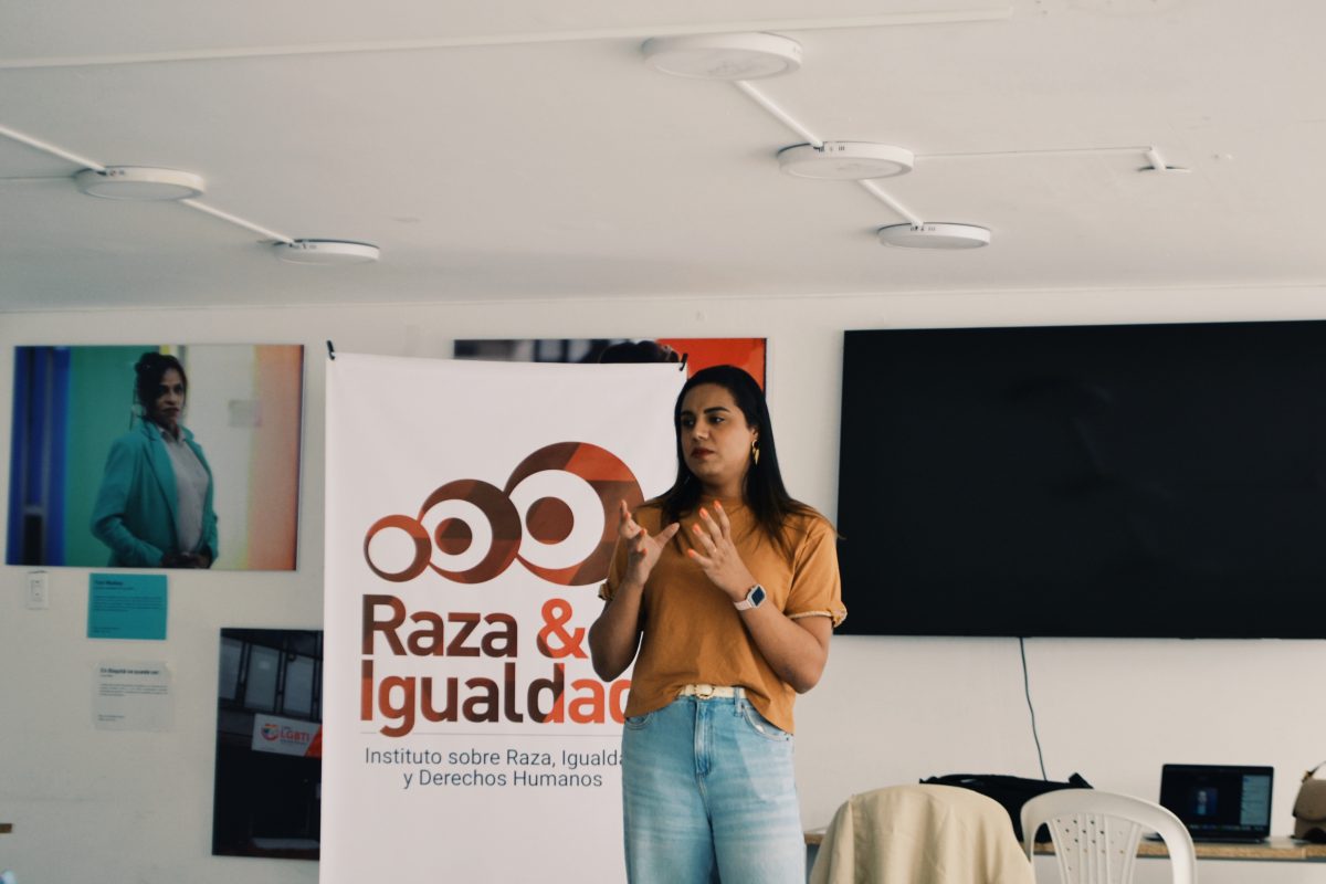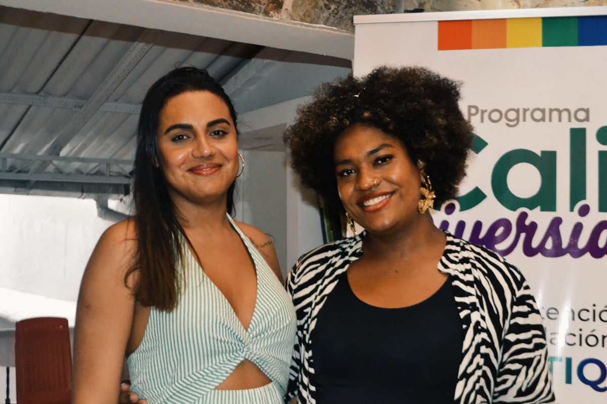 Encuentro en Bogotá. Maria Paula Custódio, coordinadora de la Escuela. Asistentes del encuentro en Bogotá. Isis Carneiro, integrante de la Articulación Brasileña de Lesbianas (ABL); y Dayanna Louise, secretaria de Educación de la Asociación Nacional de Travestis y Transexuales (ANTRA). Dayanna Louise, secretaria de Educación de ANTRA. Maria Paula Custódio y Bicky Bohorquez, coord. de Diversidad sexual y de género de la Fundación Somos Diversidad.