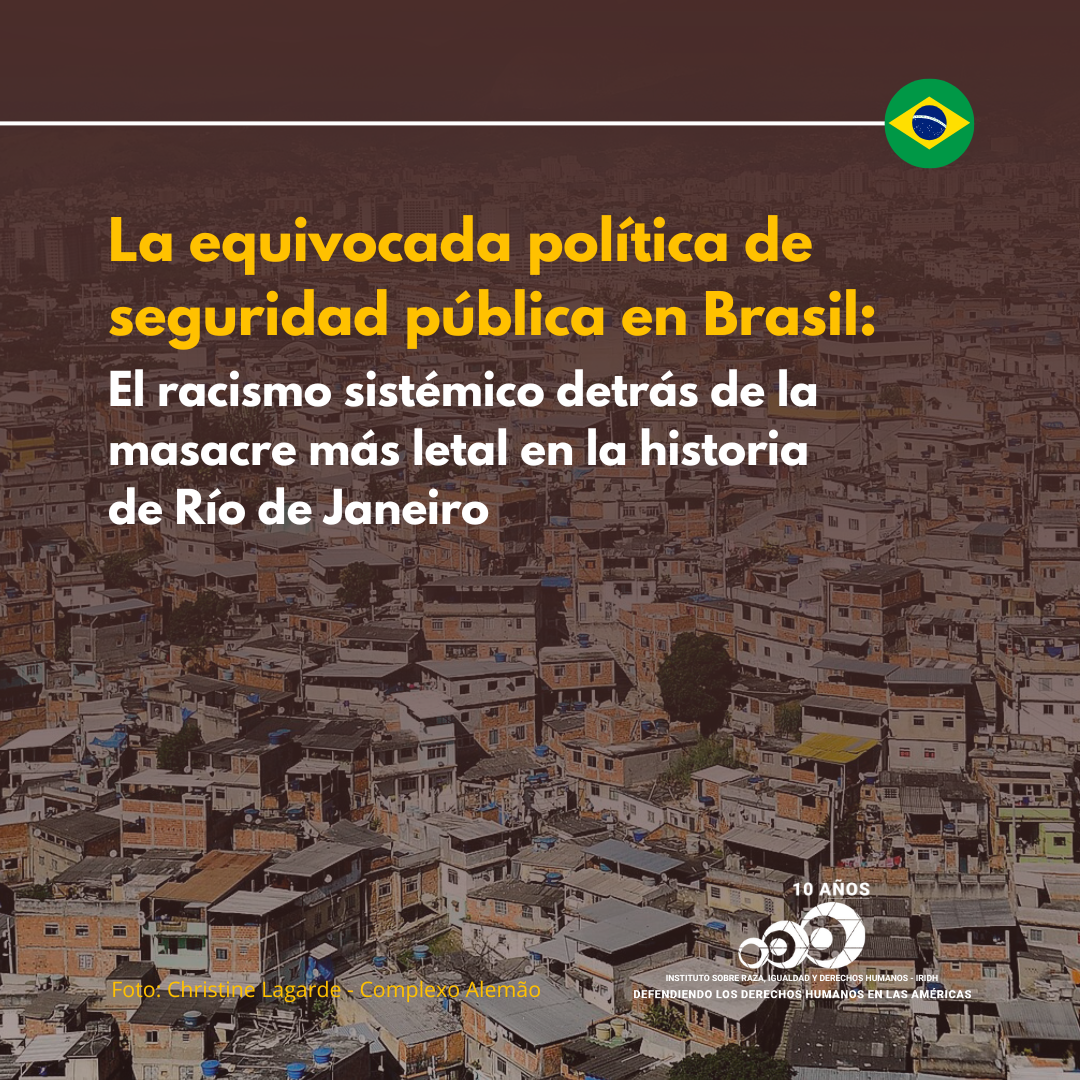 El Instituto sobre Raza, Igualdad y Derechos Humanos (Raza e Igualdad) repudia la operación realizada por el gobierno del Estado de Río de Janeiro el martes (28), que ha saldado, hasta el momento, con 64 muertes confirmadas, y refuerza que la lucha contra el crimen organizado debe ser repensada, ya que solo ha servido para generar pánico y diversas violaciones de derechos humanos en los territorios de las favelas, afectando fuertemente a las personas más vulnerables, que se encuentran como rehenes de esta política de seguridad equivocada.