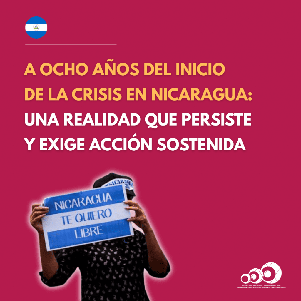 - Raza e Igualdad ha publicado diversos informes sobre la crisis de derechos humanos en Nicaragua. Uno de nuestros informes NICARAGUA: Una crisis de derechos humanos sin resolver. Análisis de las detenciones arbitrarias, procesos judiciales sin garantía y persecución política (julio 2021), examina las violaciones cometidas contra las personas privadas de libertad por motivos políticos en el marco de sus detenciones, así como durante sus procesos judiciales y los desafíos que enfrenta la institucionalidad en Nicaragua.